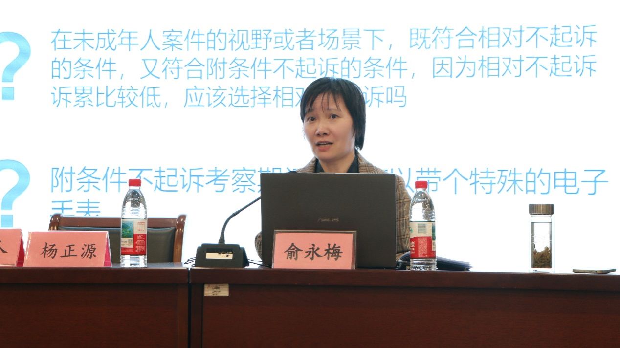 讲座聚焦“未成年人检察业务”主题,俞主任结合自身丰富的办案经验,详尽阐释了“未成年人检察发展历程”、“未成年人检察工作职责”及“未成年人检察重点制度”三方面内容。在论及“未成年人检察工作职责”时,俞主任指出,在处理未成年人犯罪案件时,“预防即保护,惩治亦挽救”,未成年人检察业务应秉持“教育为主、惩治为辅”的理念。
