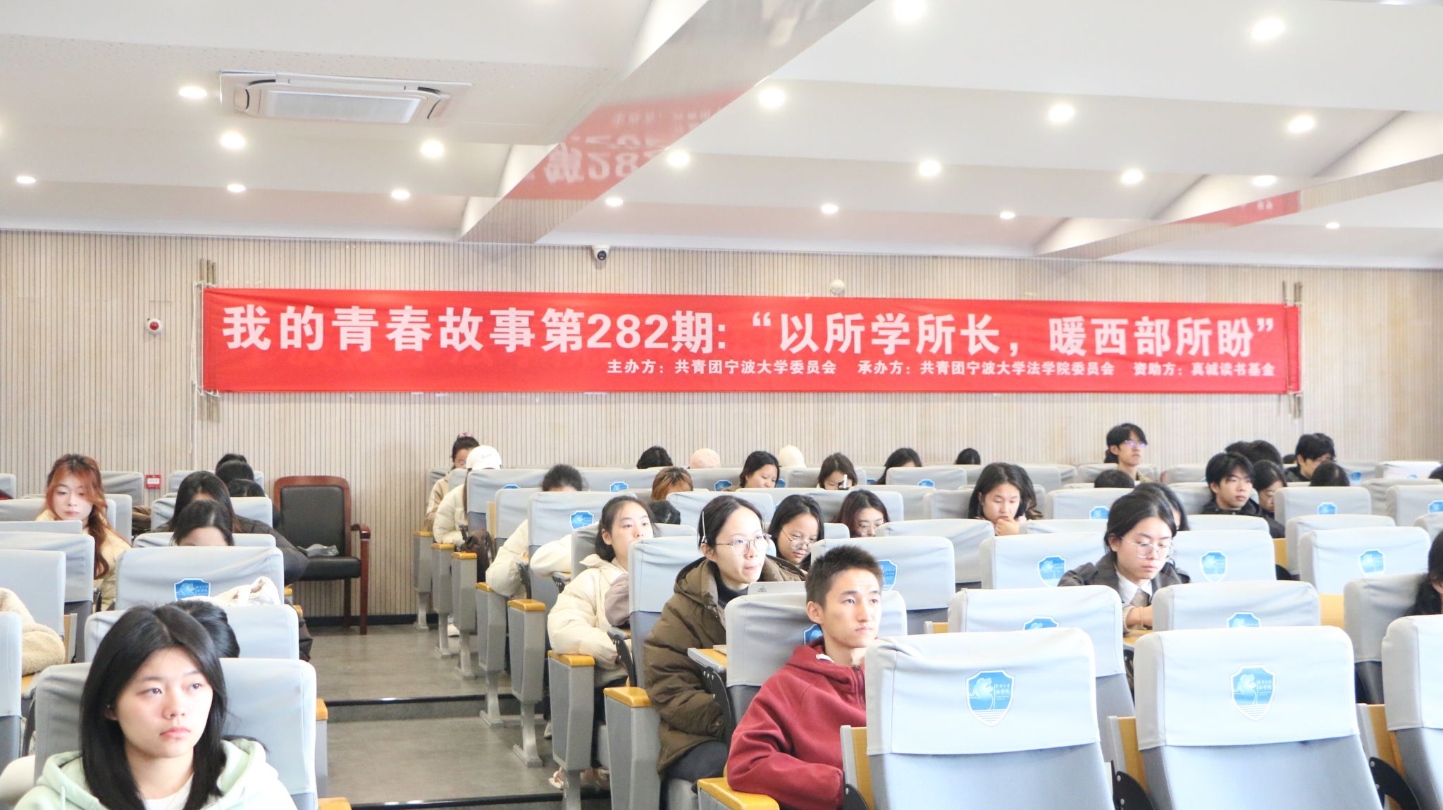 2025年11月26日下午,“我的青春故事”第282期之“以所学所长,暖西部所盼”在法学院217报告厅举办,百余名学子参与分享会。本次活动由共青团宁波大学委员会主办,共青团宁波大学法学院委员会承办,受到真诚读书基金的资助。本次活动邀请到了宁波大学第九届研究生支教团成员姚丹(目前为我院2025级公共管理专业硕士研究生),为我们分享她“用一年青春,与黔西南孩子双向奔赴”的故事。