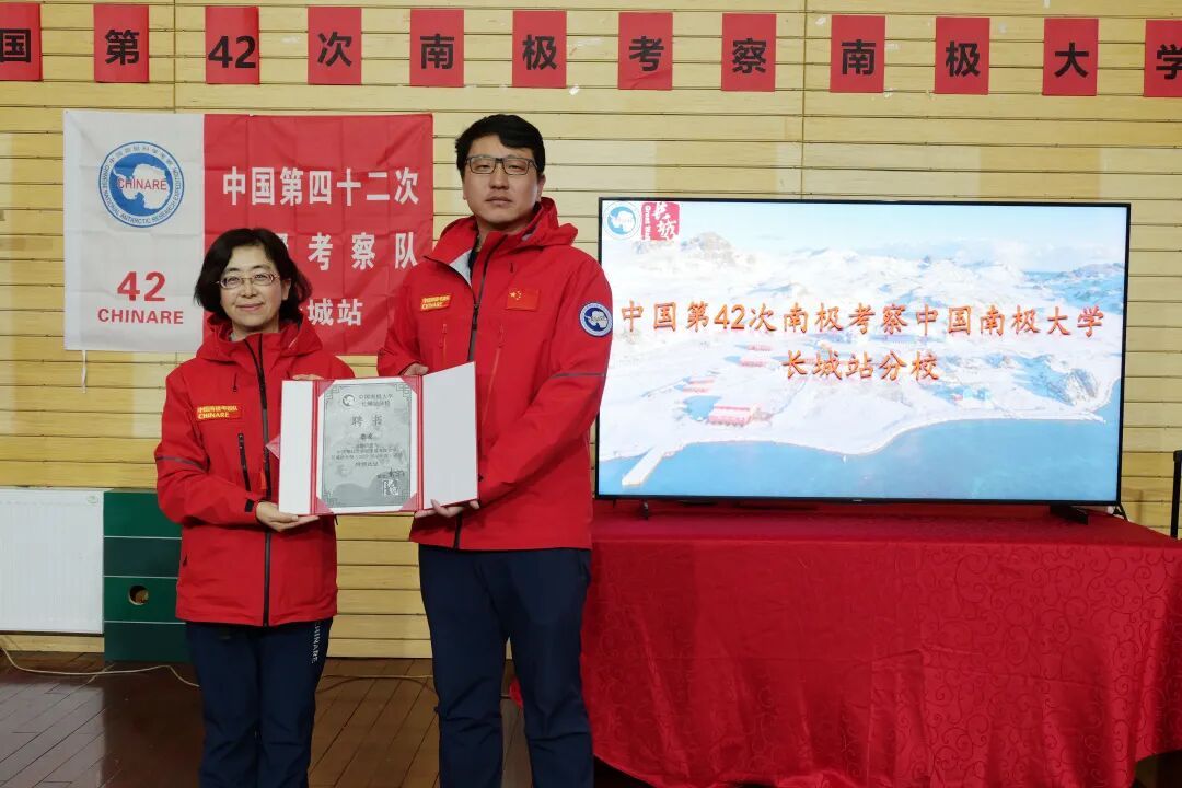 在第42次南极考察期间,长城站站长戴宇飞为曲波颁发“中国第42次南极考察南极大学长城站分校(2025-2026年度)讲师”聘书。曲波在南极讲堂结合自身在国际法、海洋法与极地法领域的研究积累,围绕我国南极立法的现状与挑战开展专题授课,并为南极立法建言献策。
