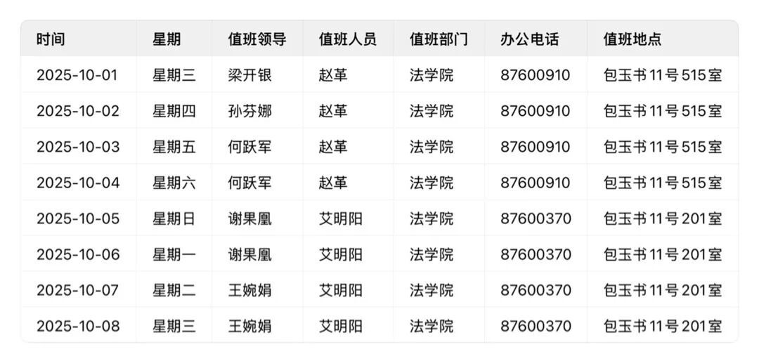 • 10月1日(周三)至8日(周三)放假调休,共8天