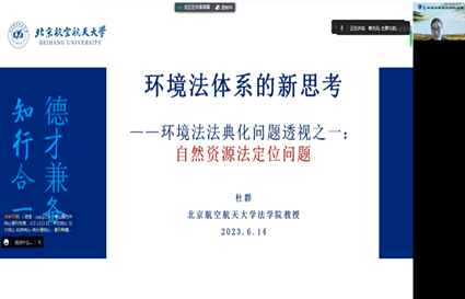本期讲座邀请了北京航空航天大学杜群教授主讲,宁波大学法学院蔡先凤教授主持,武汉大学环境法研究所陈海嵩教授、浙江农林大学文法学院陈真亮教授、宁波大学法学院姜渊副教授、宁波大学法学院张文松讲师共同与谈。北京大学、重庆大学、华东政法大学、宁波大学等200余名师生线上参与了本次讲座。