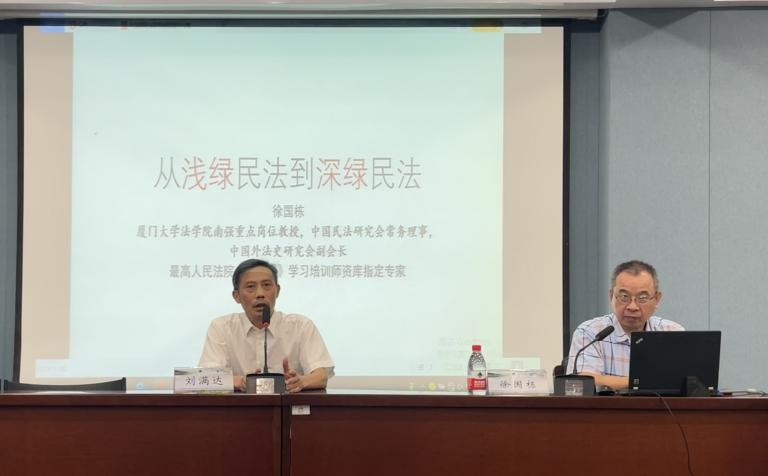 2023年6月17日傍晚,浙东法学讲坛第三十讲暨宁波立法研究院法学名家讲坛第34讲在法学院217报告厅顺利举办,厦门大学法学院教授徐国栋受邀为法学院师生就“从浅绿民法到深绿民法”主题展开讲座,本次讲座由宁波大学法学院教授刘满达主持,宁波大学法学院部分师生参与聆听了此次讲座。