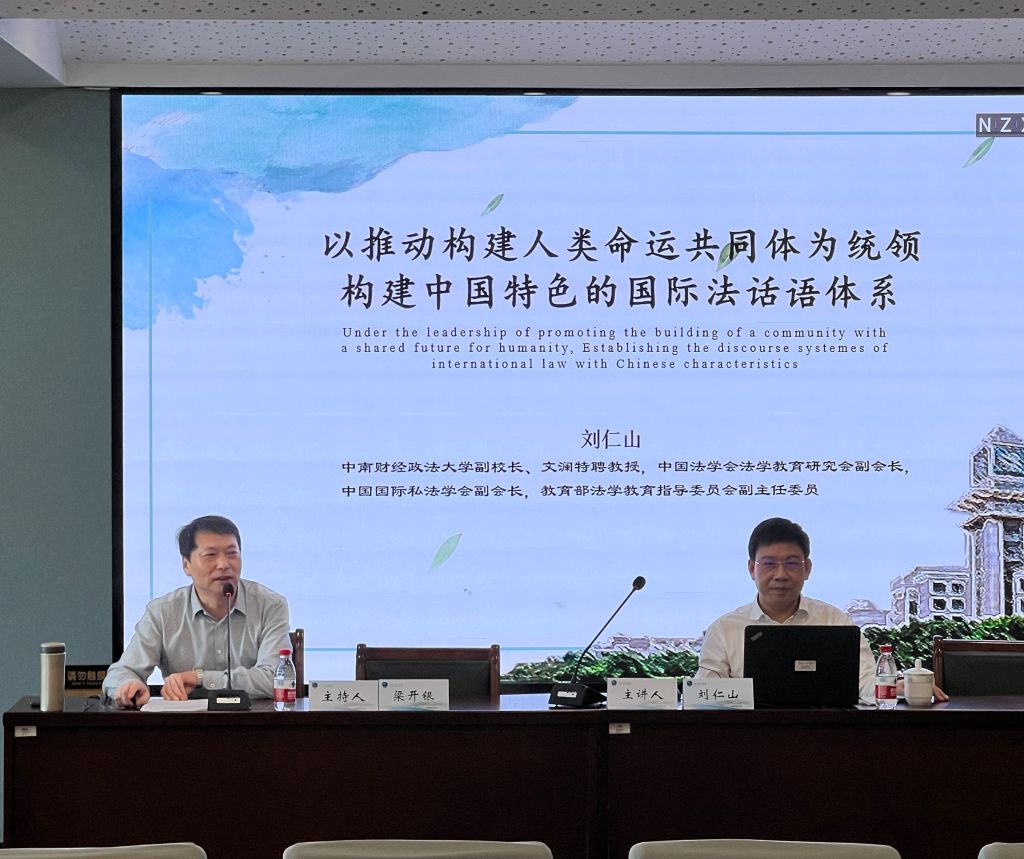 接着,刘教授回顾了国际法话语体系的提出背景:我国国家实力不断强大而且二十大报告展现了我国积极参与国际治理的态度。刘教授指出,构建中国特色国际法话语体系,是新时代我国在国际交流及国际治理中的重要举措。构建中国特色社会主义话语体系,应当以人类命运共同体为时代统领,并以此为基础推动建立具有中国特色的国际法话语体系。