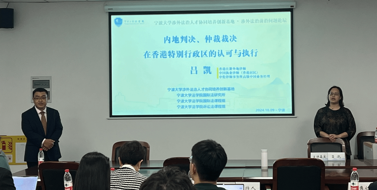 10月9日晚,浙东法学讲坛第四十八讲暨涉外法治前沿系列(三)“内地判决、仲裁裁决在香港特别行政区的认可与执行”讲座在法学院顺利举行。