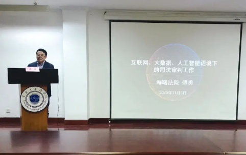 11月5日晚,“互联网、大数据、人工智能语境下的司法审判实践”主题讲座在法学院217会议室顺利举办。主讲人为宁波市海曙区人民法院院长、二级高级法官的傅勇教授。讲坛由法学院党委书记李学兰教授主持,法学院百余名师生聆听了本次讲座。