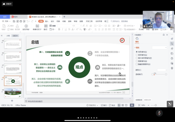 在讲座的最后,张教授对本次讲座进行了总结,并对“责任主义从一个基本法律责任归责原则在公法领域和私法领域的不同”,“企业应该如何进行自我合规管理”等问题进行了交流。本次讲座以当下刑事诉讼中的企业合规为主题,通过张老师的解读,极大开拓了师生的学术视野。