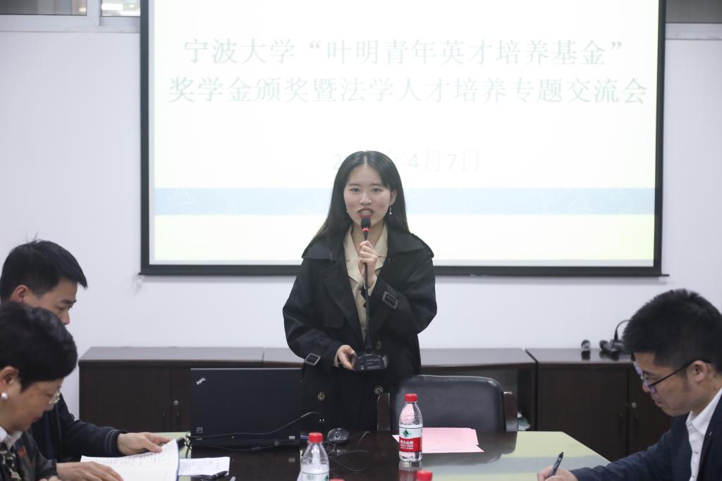 姜煜洌老师在发言中抛出了“奖学金的背后意义何在”的思考。她向同学们分享了“好的教育应该是培养终身运动者、责任担当者、问题解决者和优雅生活者”这一教育理念的探讨。她指出,得益于优秀学长的激励,获奖的同学们在各个领域都展示了宁波大学法学院学子的风采。她希望同学们传递能量,播撒关爱,让奖学金设立的意义更深厚。
