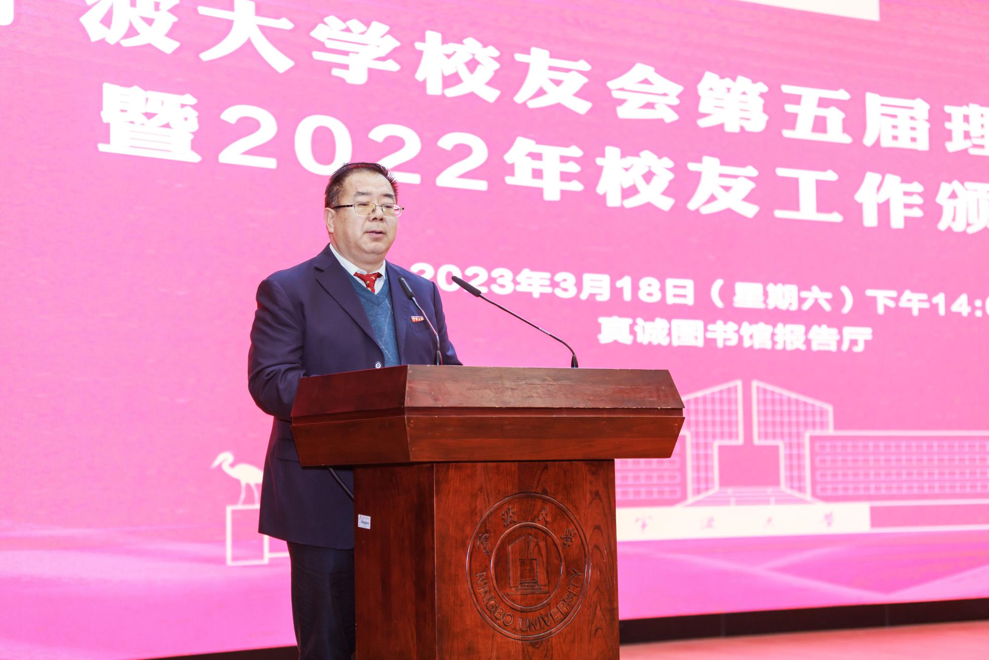 3月18日下午,宁波大学校友会第五届理事会会议暨2022年校友工作颁奖典礼在真诚图书馆报告厅举行。校党委书记朱达出席并讲话,各地方(行业)校友会代表、学校相关部门负责人、各学院校友工作领导小组成员、学生代表参加活动。活动由副校长汪浩瀚主持。