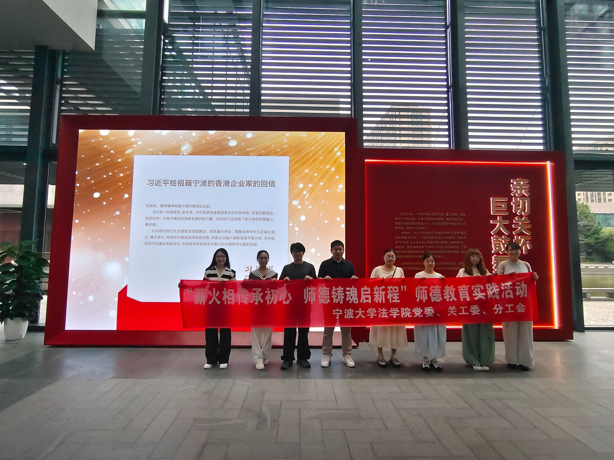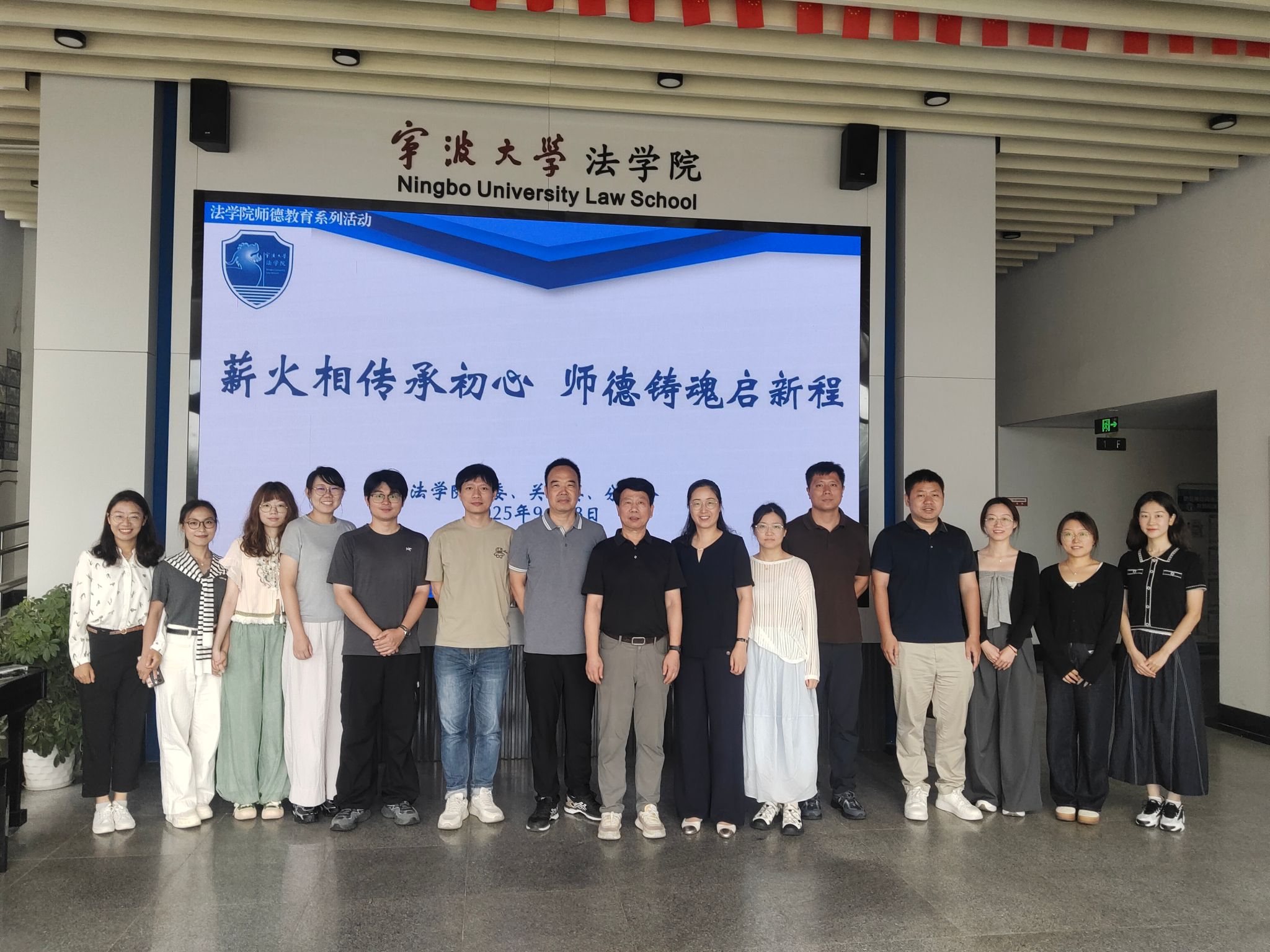 2025年9月18日,这个承载着历史记忆的特殊日子,法学院党委深入贯彻落实习近平总书记关于教育的重要论述,强化青年教师师德师风建设,联合关工委、分工会以“薪火相传承初心·师德铸魂启新程”为主题,组织学院青年教师开展师德教育系列活动。通过“五老”讲座与宁波帮博物馆参观学习等环节,将爱国主义教育与师德建设深度融合,激励青年教师以宁波帮“诚信、务实、开放、创新”的精神为镜,践行立德树人使命。