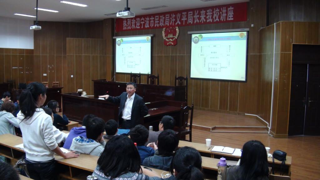 11月20日上午九点,法学院在阶五教室举行了题为“变革时代的社会秩序与社会风险——关于基层社会治理的几个问题”的讲座。讲座由法学院副院长周亚越教授主持,主讲人为宁波民政局副局长,我国著名社会管理专家许义平教授。来自法学院和阳明学院经管类的学生认真聆听了本次讲座。