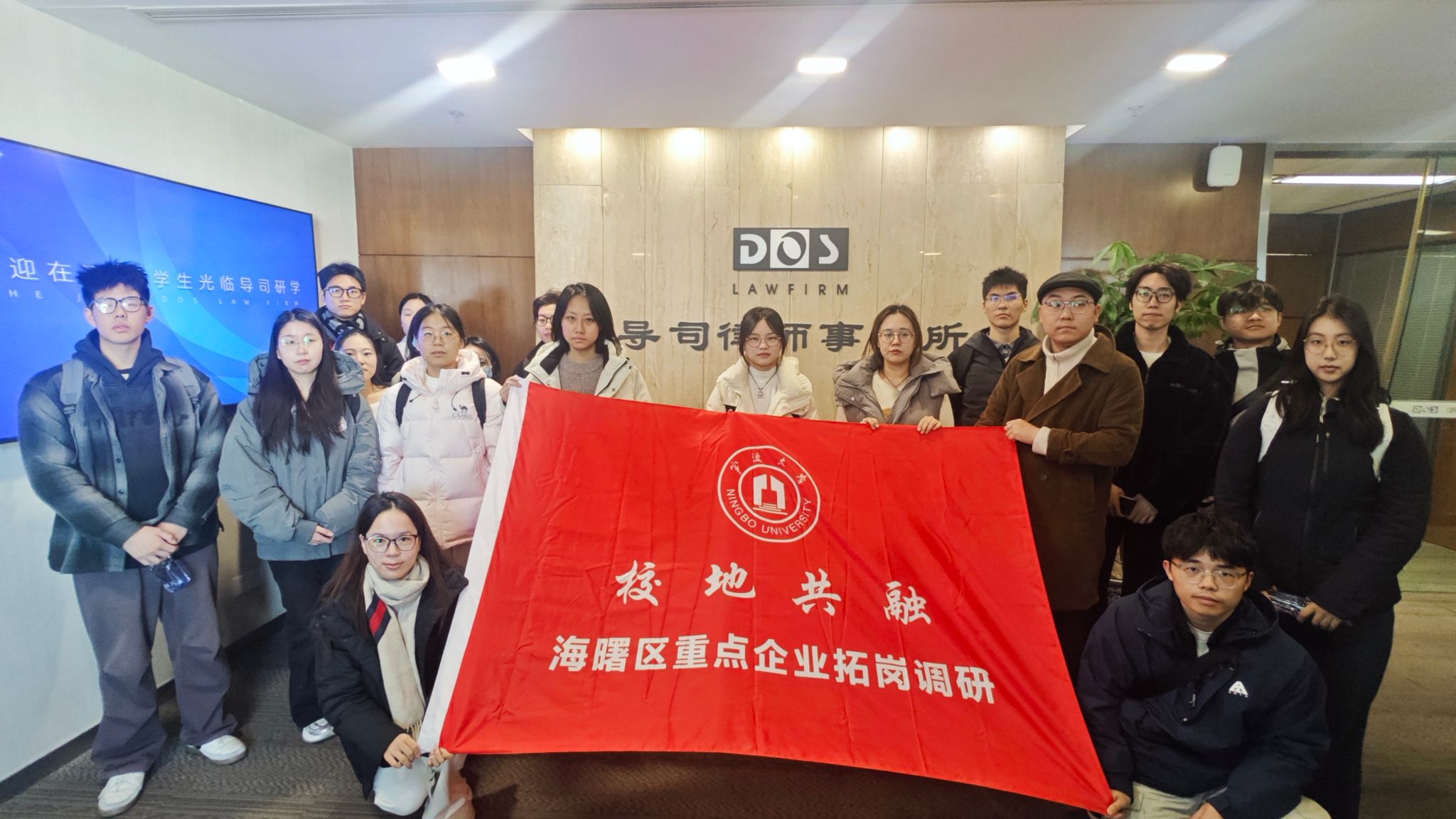 11月19日,宁波大学学生发展与服务处、法学院联合海曙区人社局,组织法学专业学生走进海曙区,踏上了一场知行交融的律师事务所研学之旅。研学队伍先后走访位于海曙区的浙江导司律师事务所、浙江金汉律师事务所,并前往梁祝文化公园,展开了一段专业知识与自然人文交织的研学旅程。