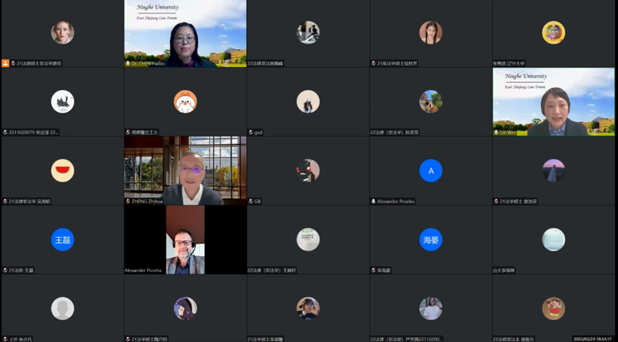 3月20日晚,浙东法学讲坛第十四讲由德国汉堡大学教授Alexander Proelss(亚历山大·普洛里斯)主讲,以“海洋和可持续发展”为主题,开展了一场两个小时的线上学术讲座,讲座由宁波大学法学院国际办副主任林薇老师主持,上海交通大学日本研究中心副研究员、上海交通大学凯源法学院海洋法治研究中心研究员郑志华老师和宁波大学法学院讲师、宁波大学东海战略研究院研究员陈海波老师进行了精彩与谈。活动吸引了校内外共计两百余名师生参与,反响热烈,取得了圆满成功。