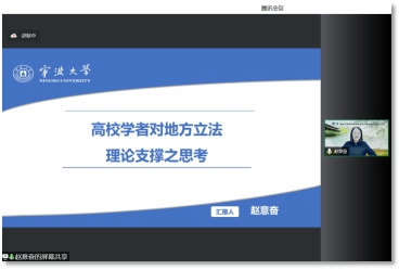 4月16日下午,宁波立法研究院学术沙龙第八期“项目制下地方立法的理论与实践”主题沙龙通过腾讯会议以线上方式顺利举办。本期沙龙由浙江财经大学法学院副教授李春燕、浙江财经大学法学院副教授陈无风、浙江大学立法研究院副研究员蒋成旭、浙大城市学院法学院副教授胡斌和宁波大学法学院教授赵意奋主讲,宁波市人大常委会法工委副主任肖子策、宁波大学法学院教授谢小瑶与谈,宁波大学法学院副教授夏雨主持。各高校师生及相关实务部门人士近两百人参与了本次沙龙研讨会。